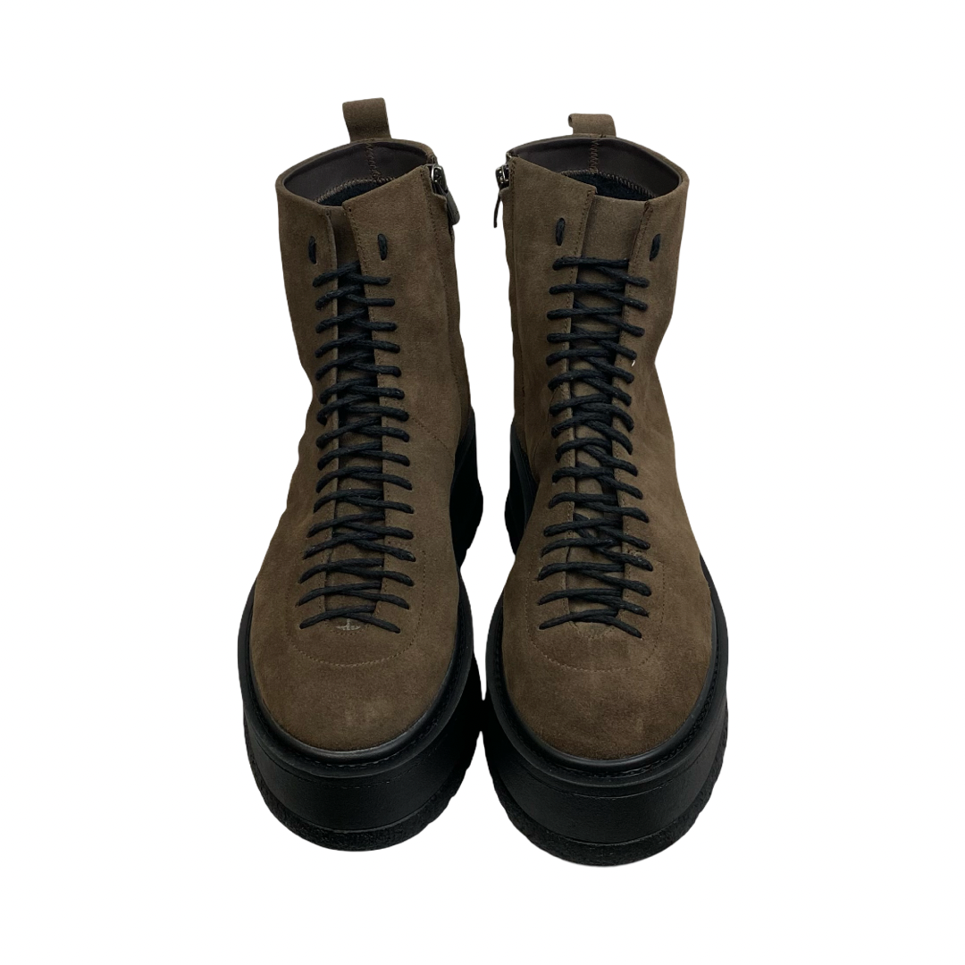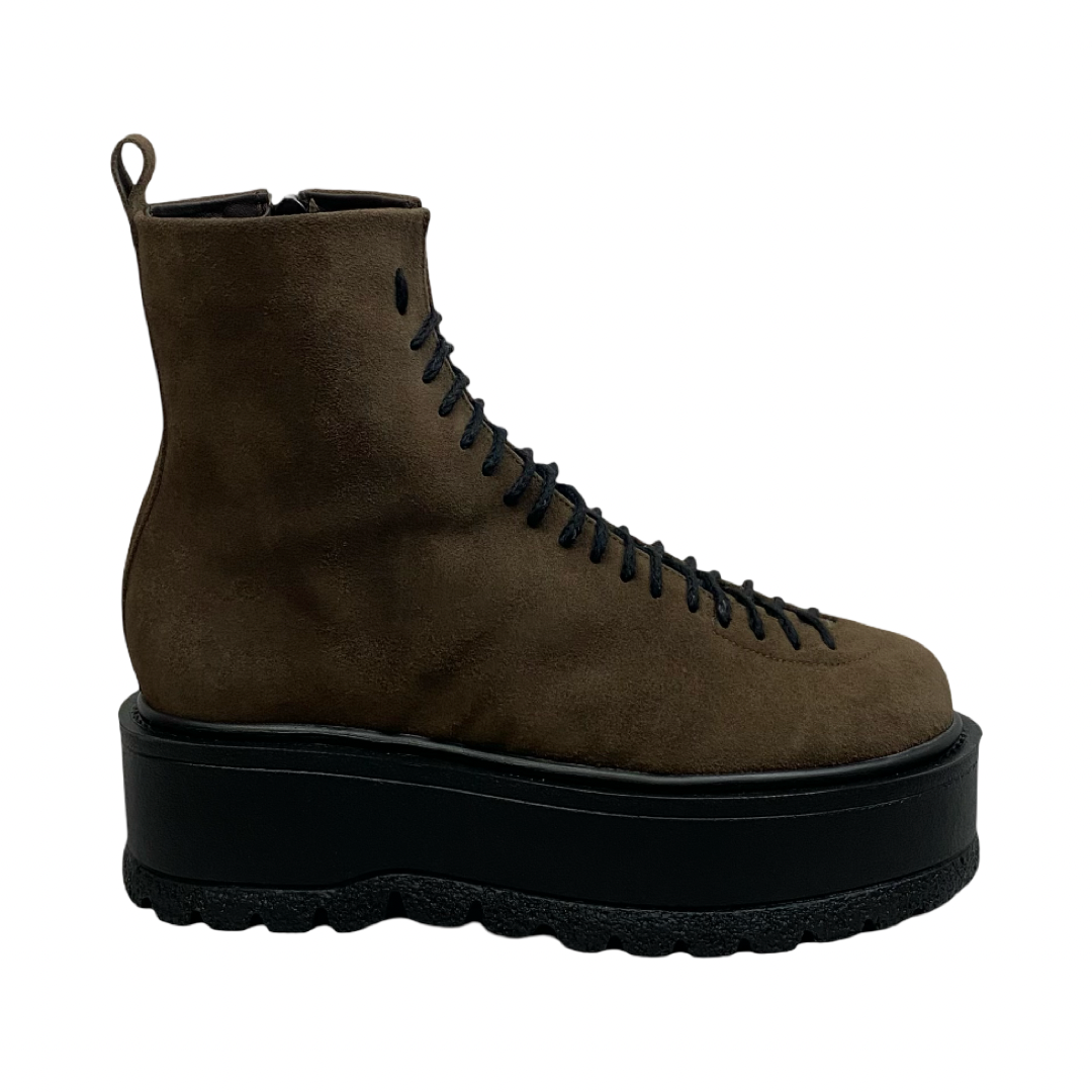 Ghete din piele naturală și închidere cu șiret. Ghetele Dara din piele naturală velur la exterior si material textil de tip blaniță la interior se disting prin stilul nonconformist conferit de talpa de 5 cm. Talpa generoasă nu numai că se regăsește printre tendințele actuale, dar sporește totodată nivelul de confort și rezistență al ghetelor.