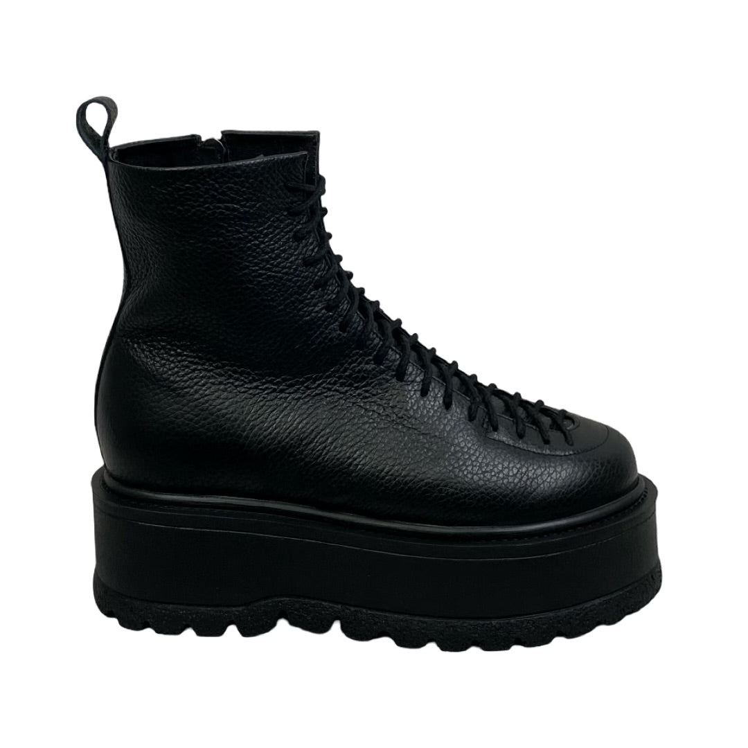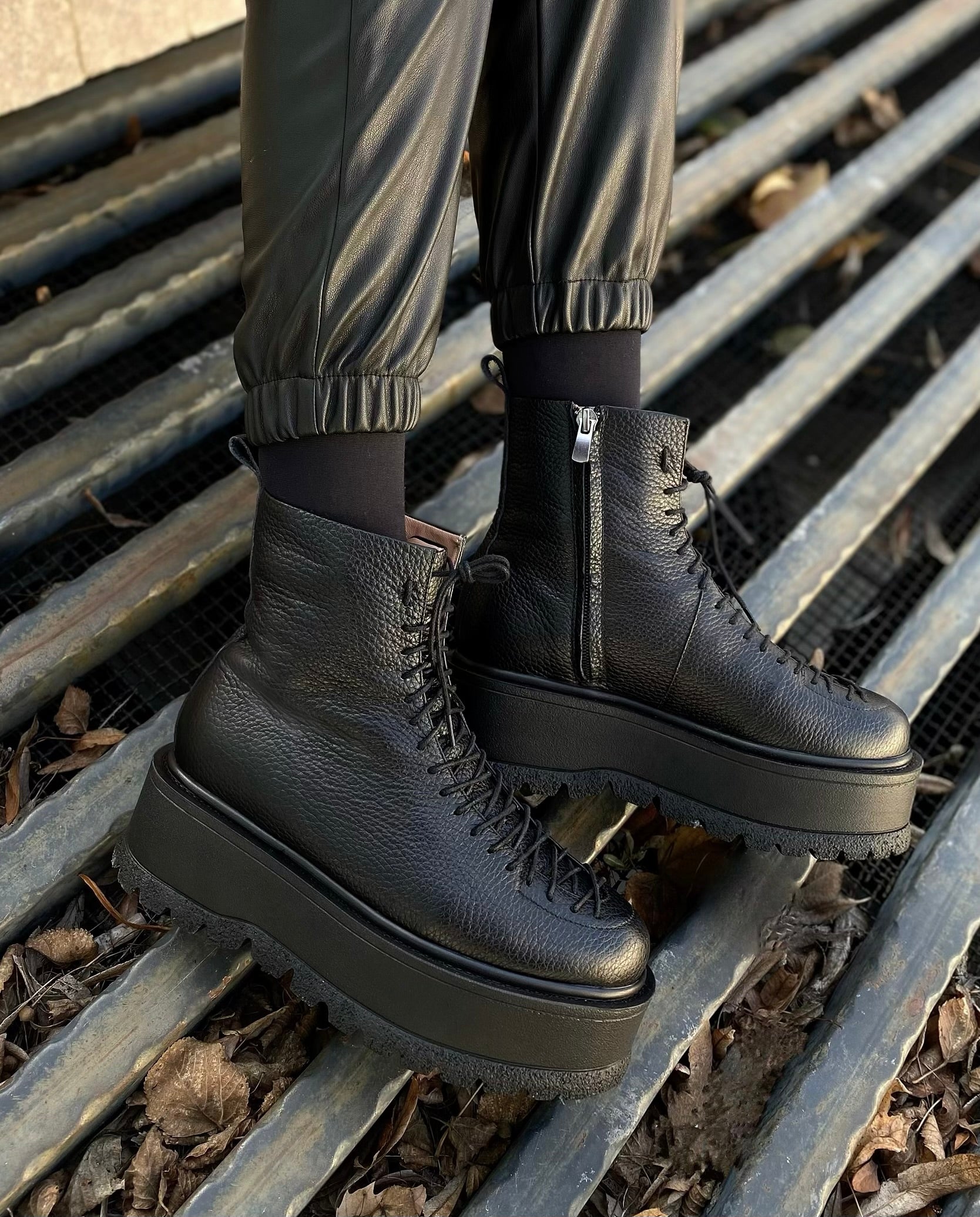 Ghete din piele naturală și închidere cu șiret. Ghetele Dara din piele naturală la exterior si material textil de tip blaniță la interior se disting prin stilul nonconformist conferit de talpa de 5 cm. Talpa generoasă nu numai că se regăsește printre tendințele actuale, dar sporește totodată nivelul de confort și rezistență al ghetelor.